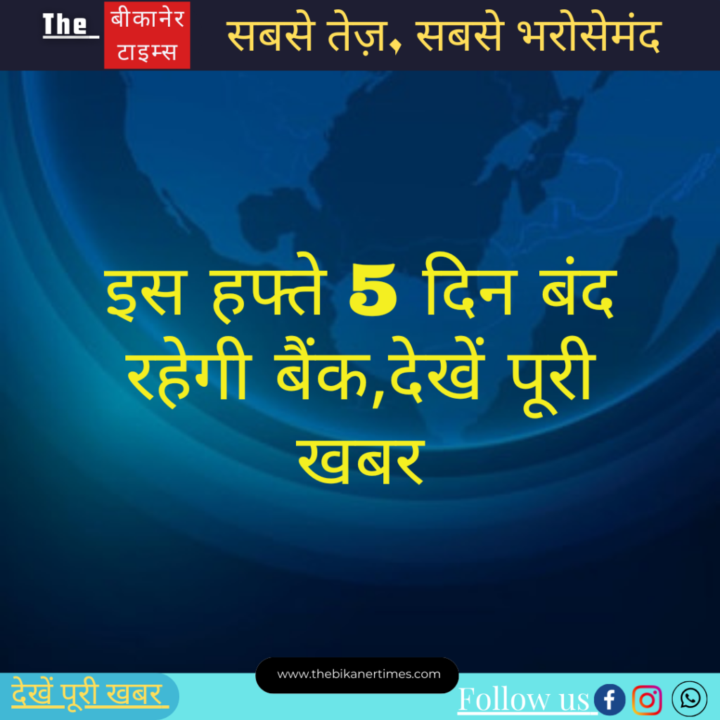 The Bikaner Times – इस हफ्ते एक के बाद एक छुट्टियां देखने को मिलेंगी वही बीकानेर में गणगौर के अवसर पर स्थानीय अवकाश भी रहेगा। बैंकों में जाने वाले लोगों को यह सलाह दी जाती है कि वे स्थानीय और राज्य अवकाश छुट्टियों की पुष्टि करने के लिए अपनी निकटतम बैंक शाखाओं से जांच करें।