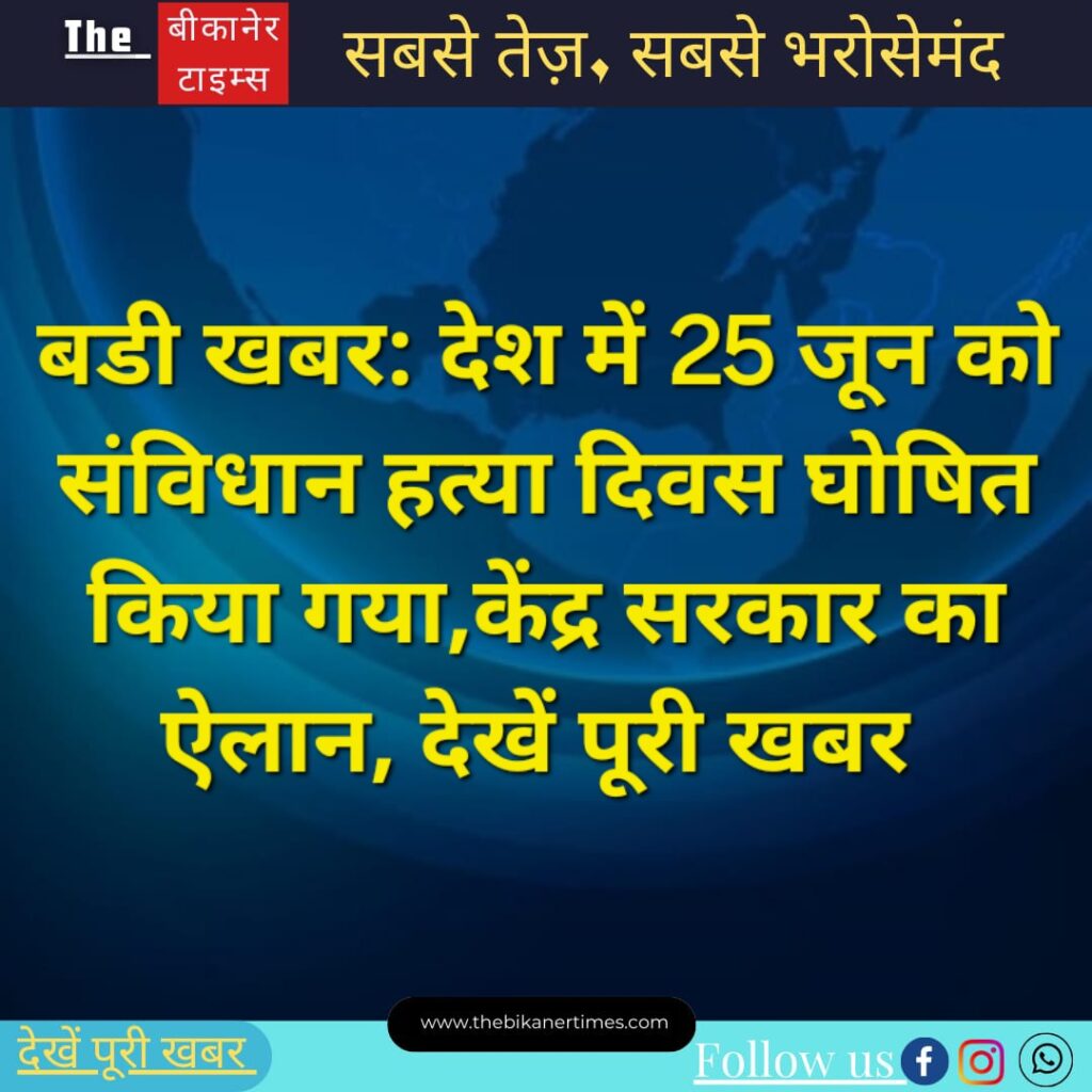 The Bikaner Times – बडी खबर: देश में 25 जून को संविधान हत्या दिवस घोषित किया गया,केंद्र सरकार का ऐलान, देखें पूरी खबर