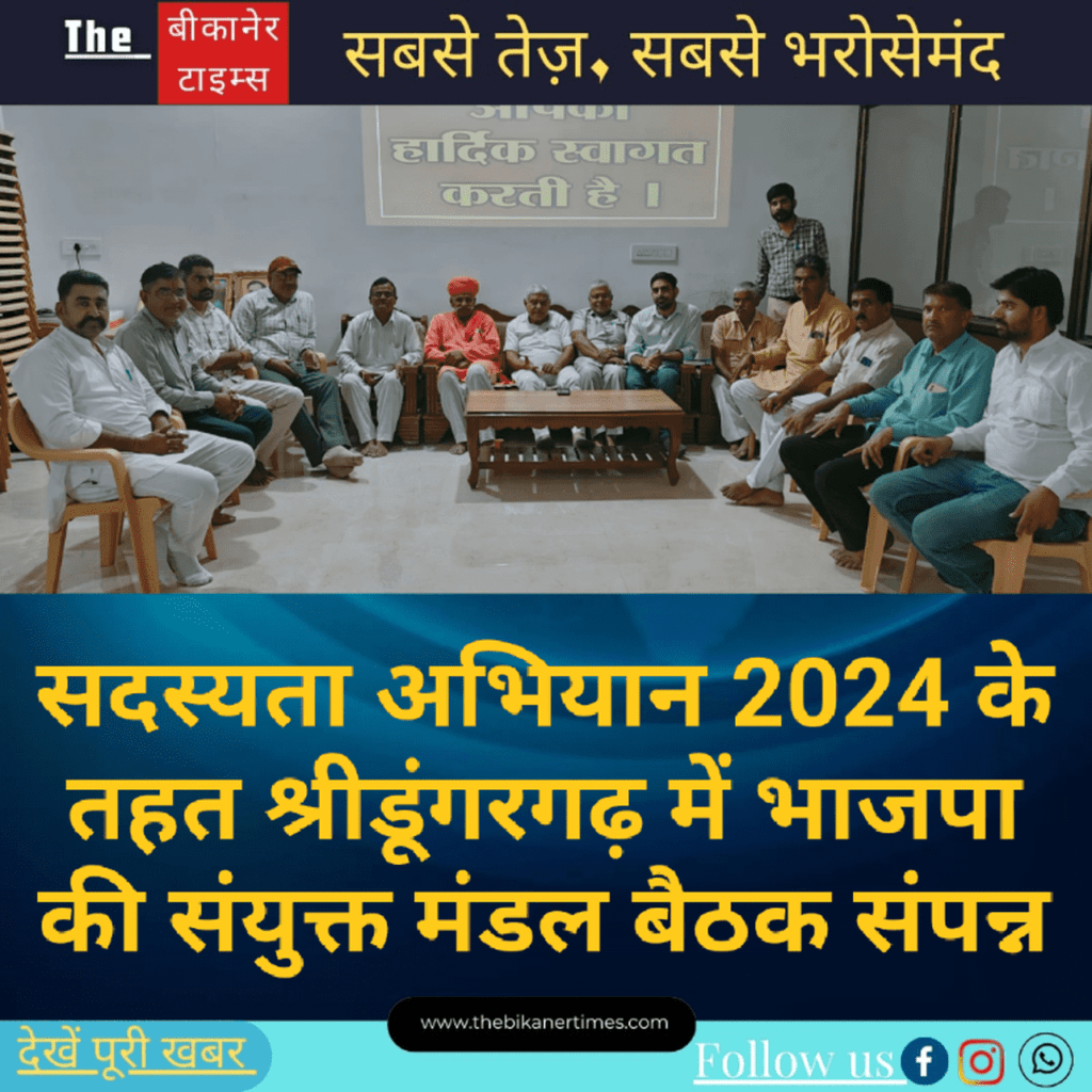 The Bikaner Times – सदस्यता अभियान 2024 के तहत श्रीडूंगरगढ़ में भाजपा की संयुक्त मंडल बैठक संपन्न