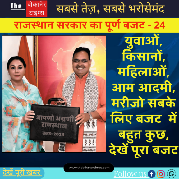The Bikaner Times – प्रदेश में भजनलाल सरकार द्वारा आज अपनी सरकार का पहला बजट पेश कर दिया गया है। वित्तमंत्री दिया कुमारी राज्य का बजट पेश कर रही हैं। करीब 33 साल बाद यह पहला अवसर है जब राज्य का बजट केंद्र के बजट से पहले आया है। बता दें कि केंद्र सरकार 28 जुलाई को आम बजट पेश करेगी। बजट में राज्य सरकार का मुख्य फोकस महिलाओं पर है। साथ ही कानून व्यवस्था, अपराध, चिकित्सा व्यवस्था, किसान और युवाओं पर भी भजनलाल सरकार अहम फैसले ले रही है।