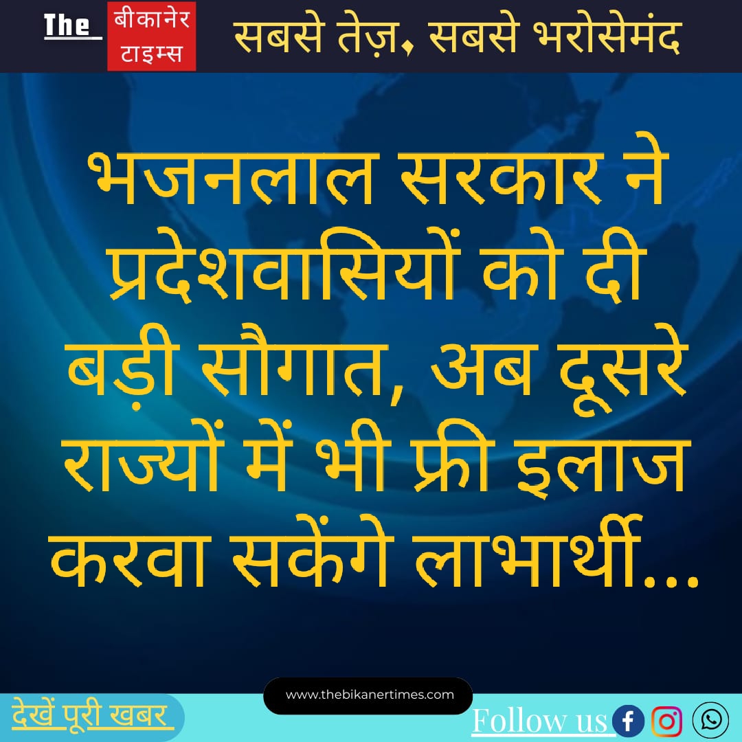 भजनलाल सरकार ने प्रदेशवासियों को दी बड़ी सौगात, अब दूसरे राज्यों में भी फ्री इलाज करवा सकेंगे लाभार्थी.. The Bikaner…