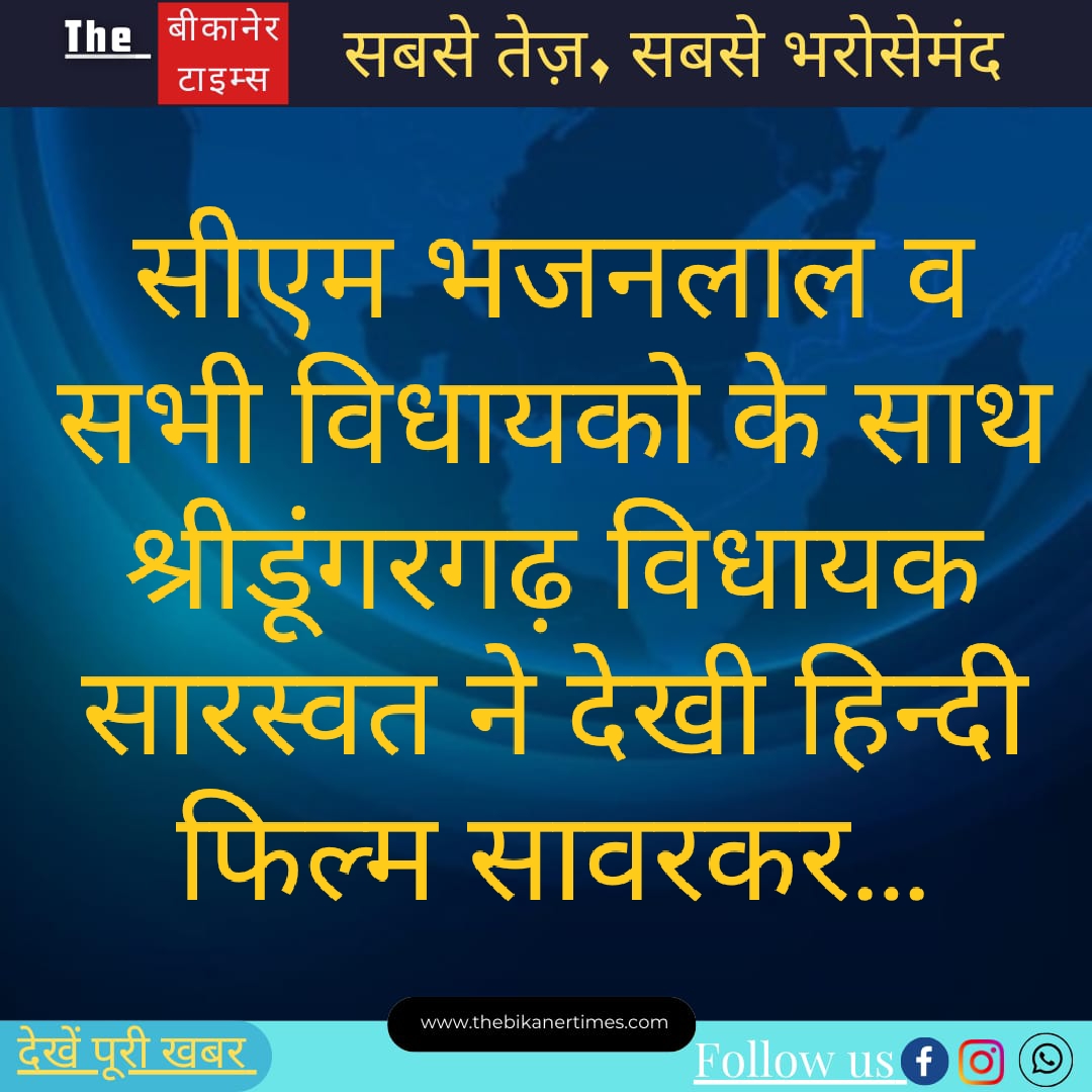 सीएम भजनलाल व सभी विधायको के साथ श्रीडूंगरगढ़ विधायक सारस्वत ने देखी हिन्दी फिल्म सावरकर… The Bikaner Times – जयपुर…