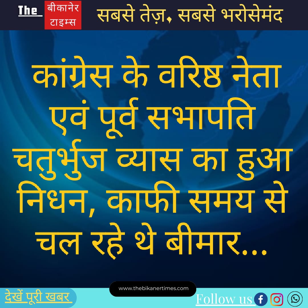 कांग्रेस के वरिष्ठ नेता एवं पूर्व सभापति चतुर्भुज व्यास का हुआ निधन, काफी समय से चल रहे थे बीमार… The…