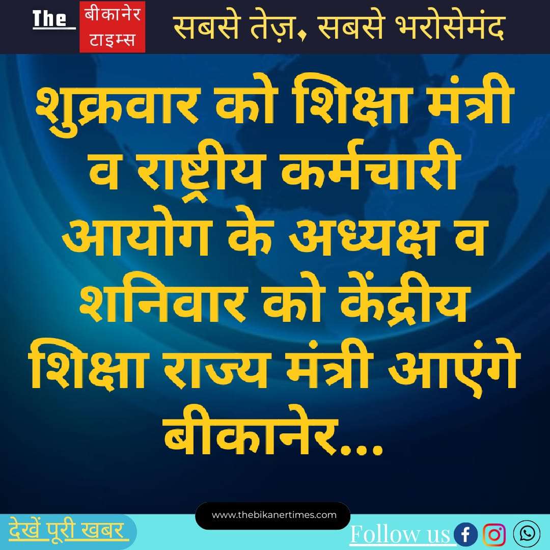 शुक्रवार को शिक्षा मंत्री व राष्ट्रीय कर्मचारी आयोग के अध्यक्ष व शनिवार को केंद्रीय शिक्षा राज्य मंत्री आएंगे बीकानेर… The…