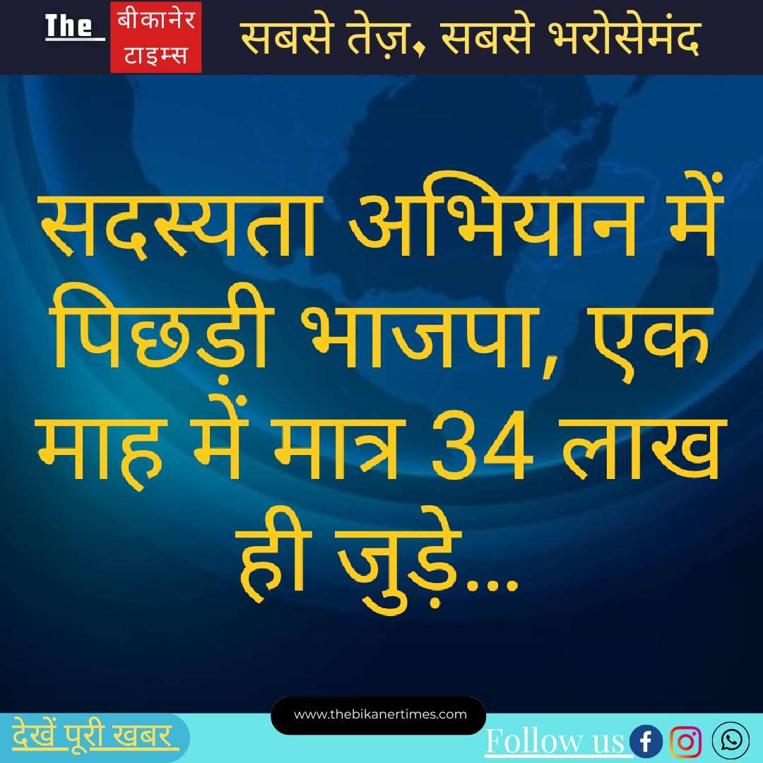सदस्यता अभियान में पिछड़ी भाजपा, एक माह में मात्र 34 लाख ही जुड़े… The Bikaner Times – राजस्थान में भाजपा…