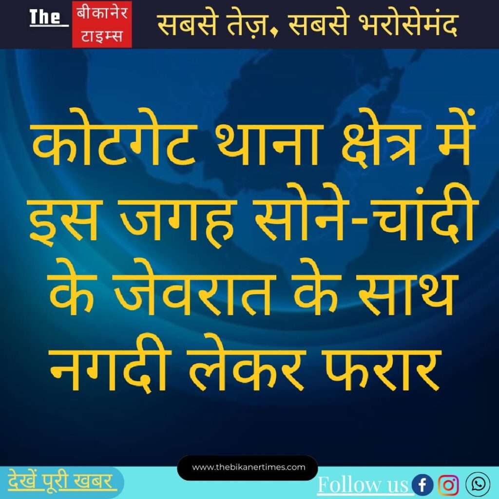 The Bikaner Times -कोटगेट थाना क्षेत्र में इस जगह सोने-चांदी के जेवरात के साथ नगदी लेकर फरार