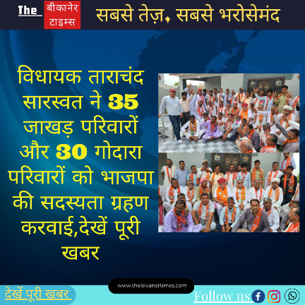 The Bikaner Times – विधायक ताराचंद सारस्वत ने 35 जाखड़ परिवारों और 30 गोदारा परिवारों को भाजपा की सदस्यता ग्रहण करवाई