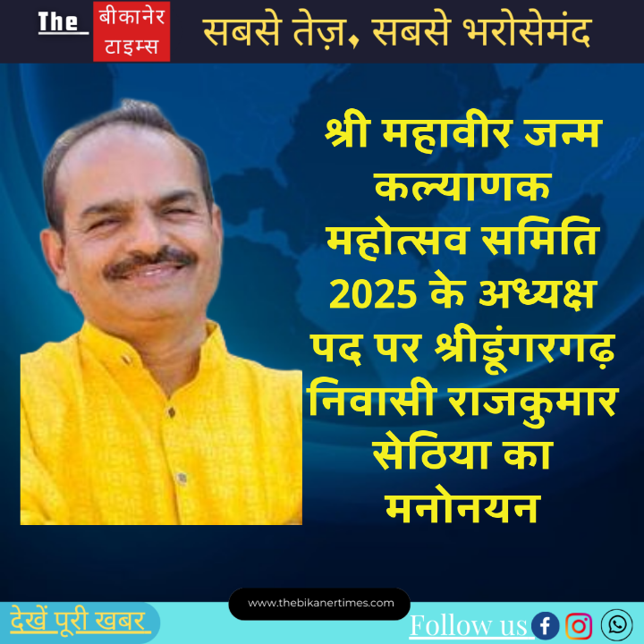 The Bikaner Times – श्री महावीर जन्म कल्याणक महोत्सव समिति 2025 के अध्यक्ष पद पर श्रीडूंगरगढ़ निवासी राजकुमार सेठिया का मनोनयन