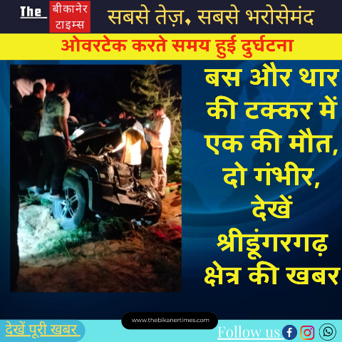 The Bikaner Times -बस और थार की टक्कर में एक की मौत,दो गंभीर, देखें श्रीडूंगरगढ़ क्षेत्र की खबर