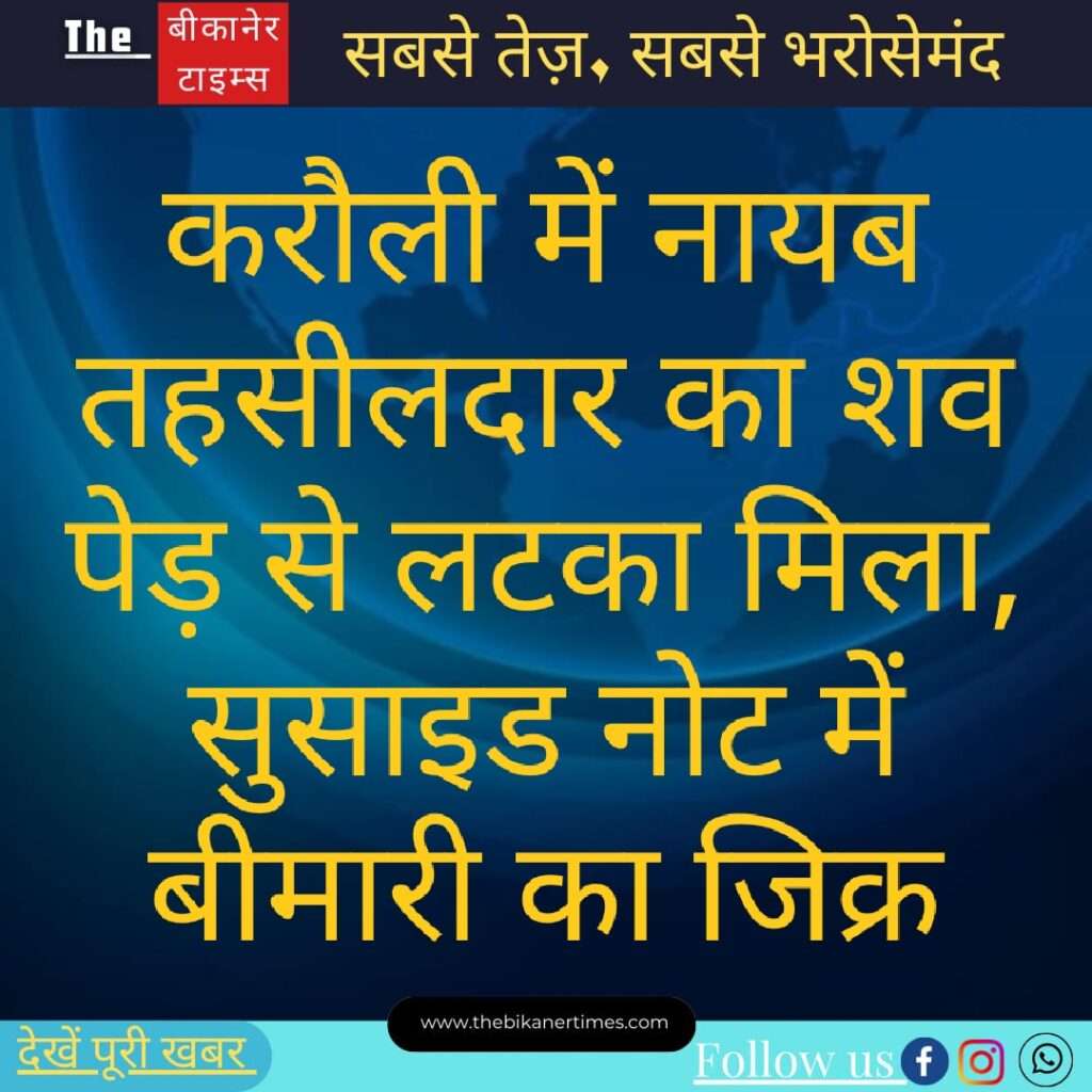 The Bikaner Times – करौली में नायब तहसीलदार का शव पेड़ से लटका मिला, सुसाइड नोट में बीमारी का जिक्र