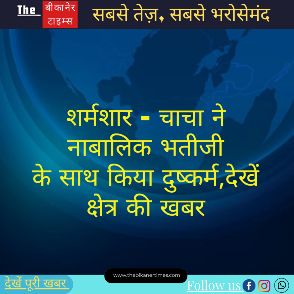 The Bikaner Times – शर्मशार – चाचा ने नाबालिक भतीजी के साथ किया दुष्कर्म,देखें क्षेत्र की खबर
