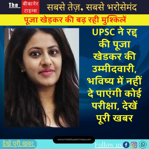 The Bikaner Times -UPSC ने रद्द की पूजा खेडकर की उम्मीदवारी, भविष्य में नहीं दे पाएंगी कोई परीक्षा, देखें पूरी खबर