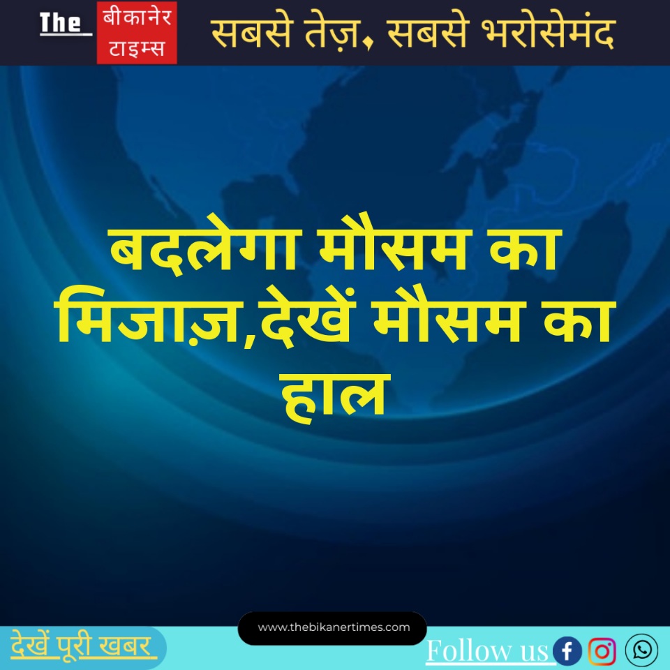 The Bikaner Times – राजस्थान में मौसम के कई रंग देखे जा रहे हैं। मौसम विभाग की माने तो 14 तक अजमेर, अलवर, बांसवाड़ा, बारां, भरतपुर, भीलवाड़ा, बूंदी, चित्तौड़गढ़, दौसा, धौलपुर, डुंगरपुर, जयपुर, झालावाड़, झुंझुनू, करौली, कोटा, प्रतापगढ़, राजसमंद, सवाईमाधोपुर, सीकर, सिरोही, टोंक, उदयपुर, बीकानेर, चूरू और हनुमानगढ़ में मेघगर्जन, वज्रपात के साथ तेज हवाएं चल सकती हैं। बाड़मेर, चूरू, जोधपुर, नागौर और पाली में मेघगर्जन, वज्रपात के साथ तेज हवाएं चल सकती हैं।